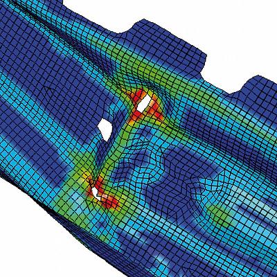 Berechnete Schädigung in einer Crashsimulation. Bild: Fraunhofer IWM