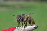 Diese Honigbiene wird gleich in einer Entfernung von drei Kilometern von ihrem Bienenstock freigelassen. Der Chip auf ihrem Rücken gibt den Wissenschaftlern Auskunft darüber, wie lange sie für den Heimweg benötigt. Foto: Mario Pahl