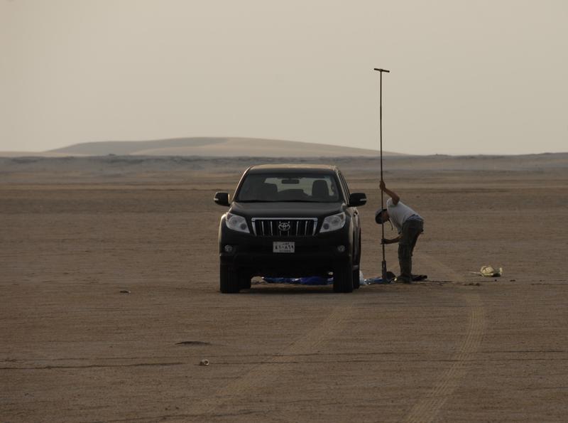 Geomorphologe bei der Bohrung in einer Sabkha-Ebene Quelle: DAI (idw)