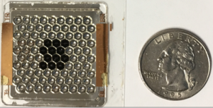 Teilweise bestückte (schwarz) Konzentrator-Solarzelle.