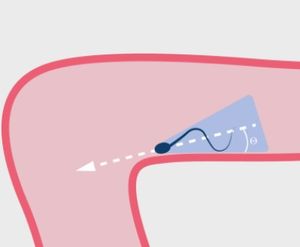 Zurück zu Samenzellen wandern in engen Durchgängen stets mit dem Kopf voran an der Wand entlang