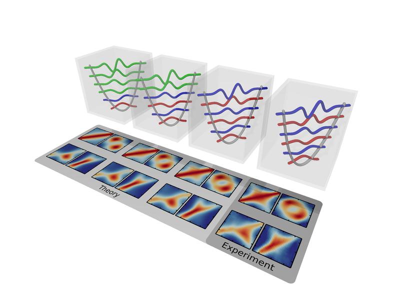 Ein klassisches Gas ist entweder kalt (blau) oder heiß (rot). Manche Quantensysteme können jedoch mehrere Temperaturen gleichzeitig aufweisen. Ein Vergleich der Korrelationsdiagramme zeigt, dass nur für eine spezielle Wahl stark unterschiedlicher Temperaturen die Vorhersagen mit den Messungen übereinstimmen. Abbildung: Sebastian Erne, Universität Heidelberg, Institut für Theoretische Physik (idw)