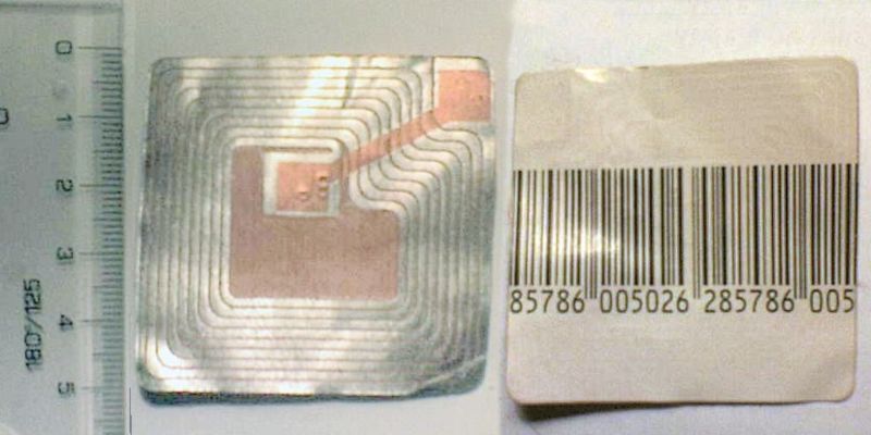 RFID-Aufkleber mit EAN-Code. Bild: Kriplozoik / de.wikipedia.org