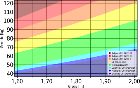 Gewichtsklassen in Abhängigkeit von Körpermasse und Körpergröße (nach nebenstehenden BMI-Angaben)