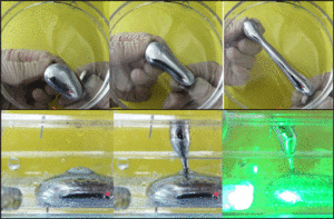 Manipulation eines Tropfens aus Flüssigmetall mit Magneten.