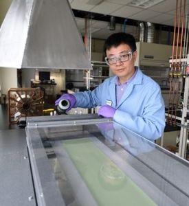 INL-Forscher Dong Ding bei der Arbeit mit der neuen Elektrode.