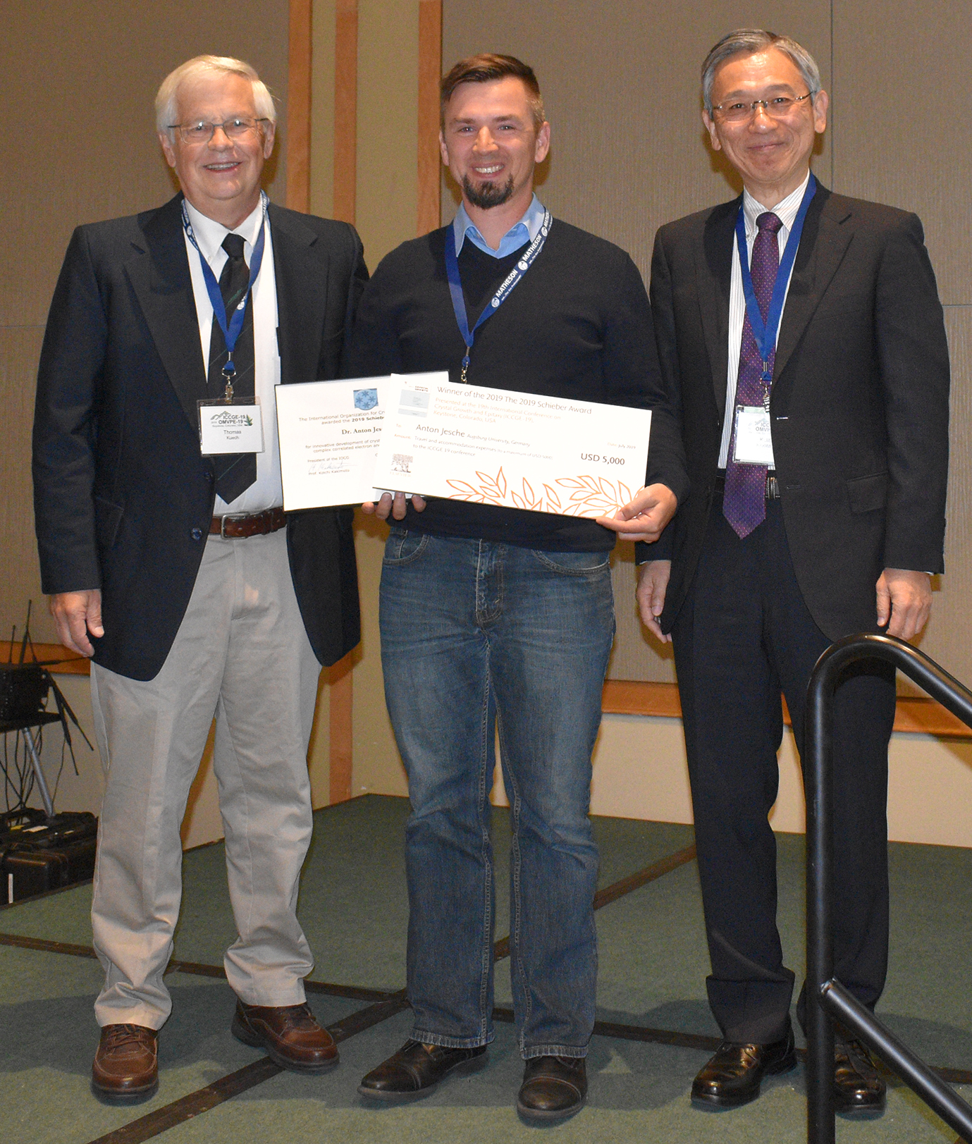 Schieber-Preisträger Anton Jesche zwischen (l.) Thomas Kuech, dem Vorsitzenden des Preiskommitees (University of Wisconsin-Madison), und dem IOCG-Präsidenten Koichi Kakimoto (Kyushu University).