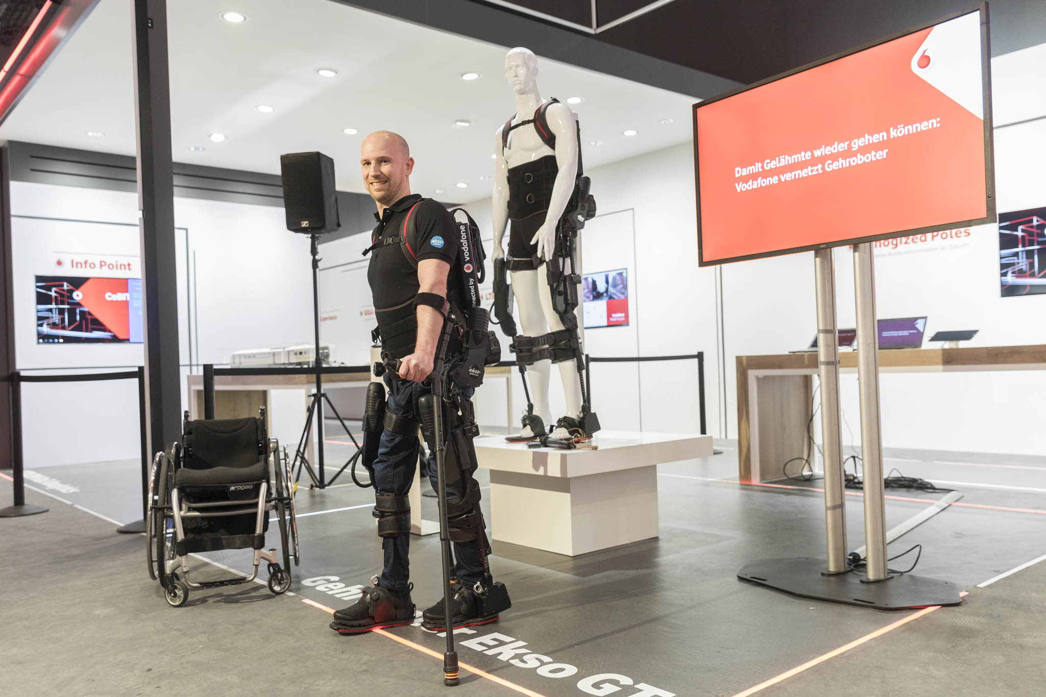 Damit Gelähmte wieder gehen können: Vodafone vernetzt Ekso Gehroboter. Bild: "obs/Vodafone GmbH"