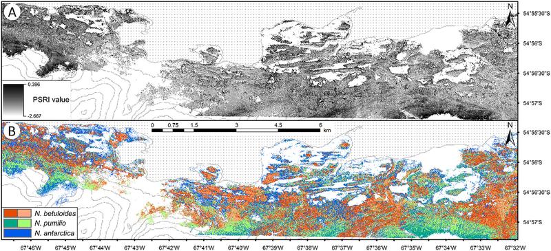 Unterschiedliche Karten der Insel Navarino erstellt auf Grundlage von WorldView-2-Bildern Quelle: © Remote Sensing of Environment (Soto et al. 2017) (idw)