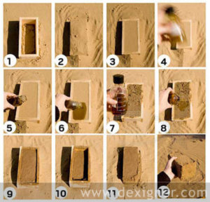 Herstellung der Bio-Ziegel in Abfolge. Bild: Dexigner