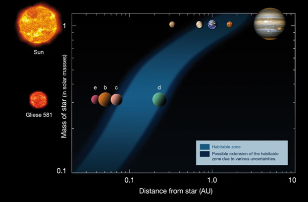 Klassische habitable Zone im Planetensystem des Sterns Gliese 581