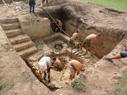 Die Ausgrabungen der zahlreichen Brunnen sind aufwendig und erfordern den Einsatz von Pumpen zur Beseitigung des Grundwassers. Bild: Olgino/GU