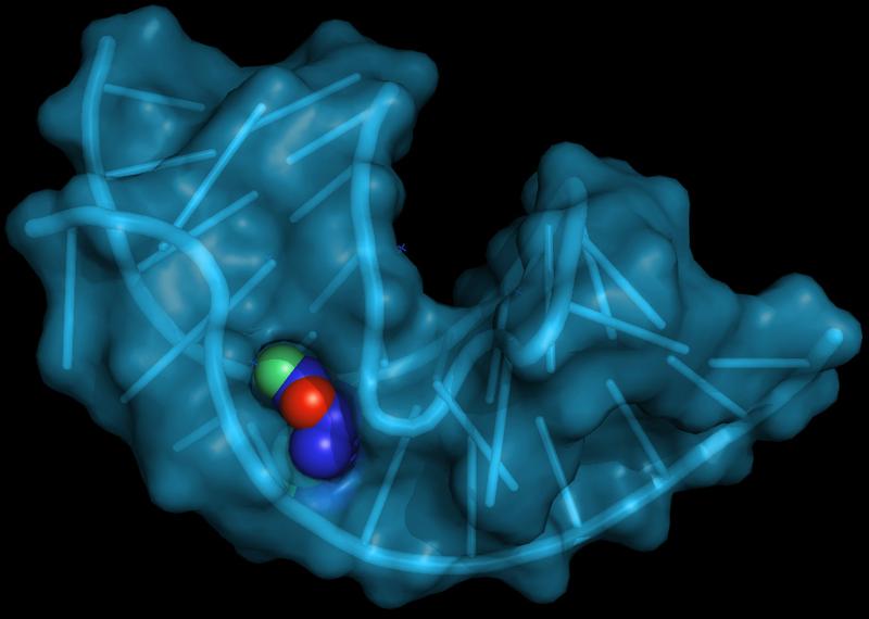 Passgenau umschließt der Aptamer das Zielmolekül Quelle: Fdardel (Wikimedia Commons) Creative Commons Attribution-Share Alike 3.0 Unported (idw)