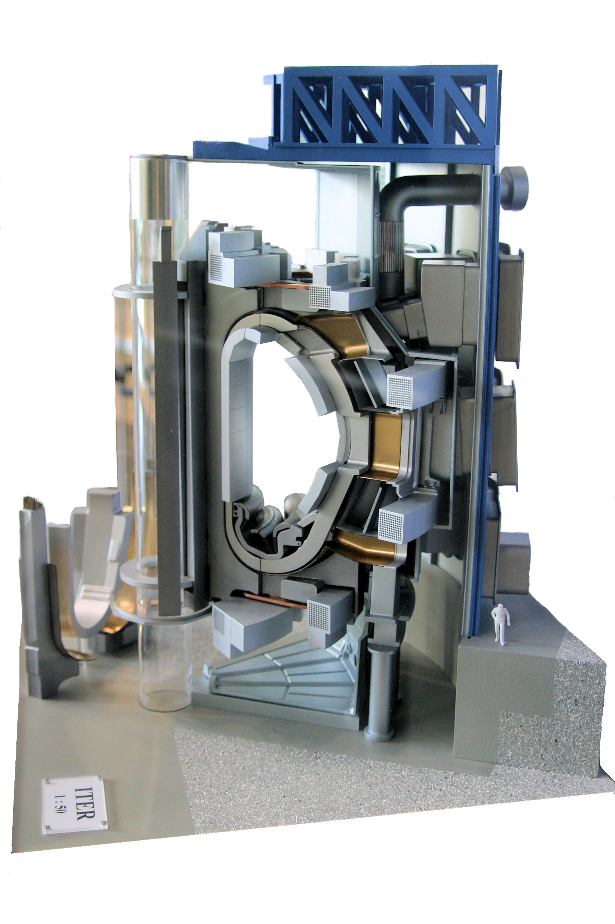 Schnitt durch ITER. Rechts unten eine Person zum Größenvergleich.