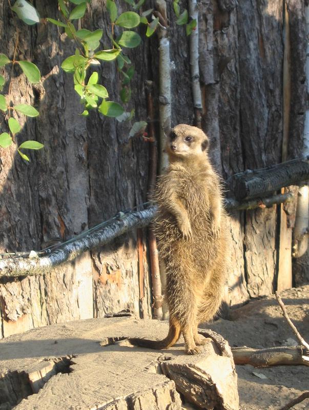 Im Hochsommer genießt das Erdmännchen ein Sonnenbad in seiner neuen Heimat Mecklenburg-Vorpommern. Doch im deutschen Winter braucht das aus Afrika stammende Raubtier künstliche Wärme. Wie diese Aufgabe energieeffizient bewältigt werden kann, zeigt jetzt eine von der DBU finanzierte Studie. Foto: DBU