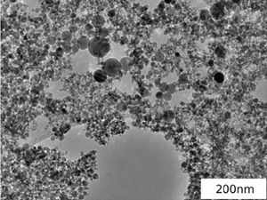 Nanopartikel aus Magnetit in einer Lösung unter dem Mikroskop.