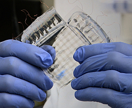 Kunsthaut: Sensor misst druck und ist dehnbar. Bild: stanford.edu