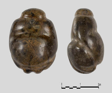 Hort von Belica, stilisierte Frauendarstellung in zwei Ansichten (Serpentinit) Quelle: Fotos: Nebosja Boric, Belgrad (idw)
