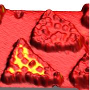 Rastertunnelmikroskopie-Aufnahme (50x50nm2) organischer Moleküle. Die Färbung zeigt die unterschiedliche Spin-Ausrichtung an. Bild: CFN)