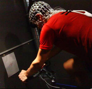 Versuch im Labor: Fahrrad-Ergometer zur Messung der Hirnaktivität. Bild: uzh.ch