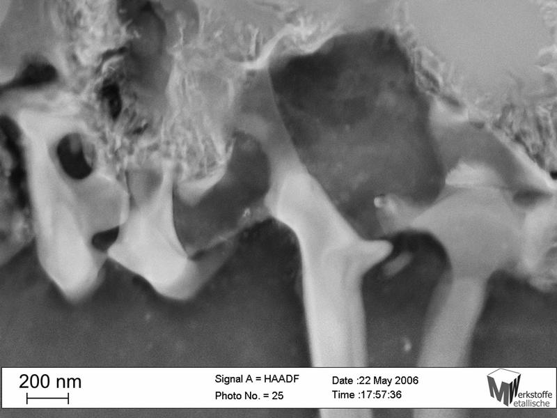 Die Abbildung zeigt eine Aufnahme mit dem Transmissionselek-tronenmikroskop einer Magnesiumlegierung des Nano-Analytik-Labors des Lehrstuhls Metallische Werkstoffe. Man beachte die Länge des Maßbalkens links unten im Bild: Sie beträgt ungefähr 1/500 der Dicke eines menschlichen Haares. UBT-Pressestelle