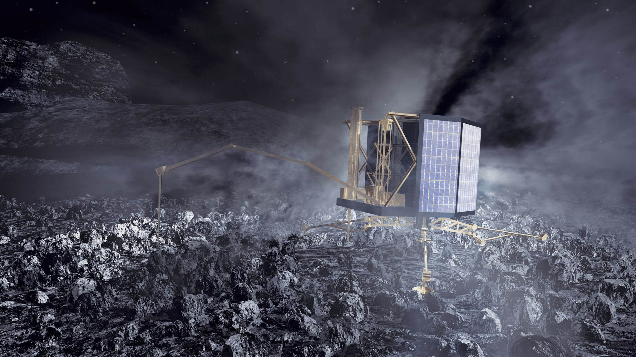 Künstlerische Darstellung der Landung der Sonde auf einem Kometen