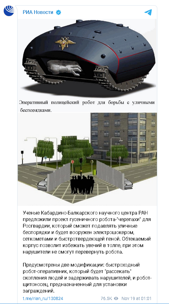 Zurück zu Russland: Roboter zur Zerstreuung von Menschenmengen zum Patent angemeldet