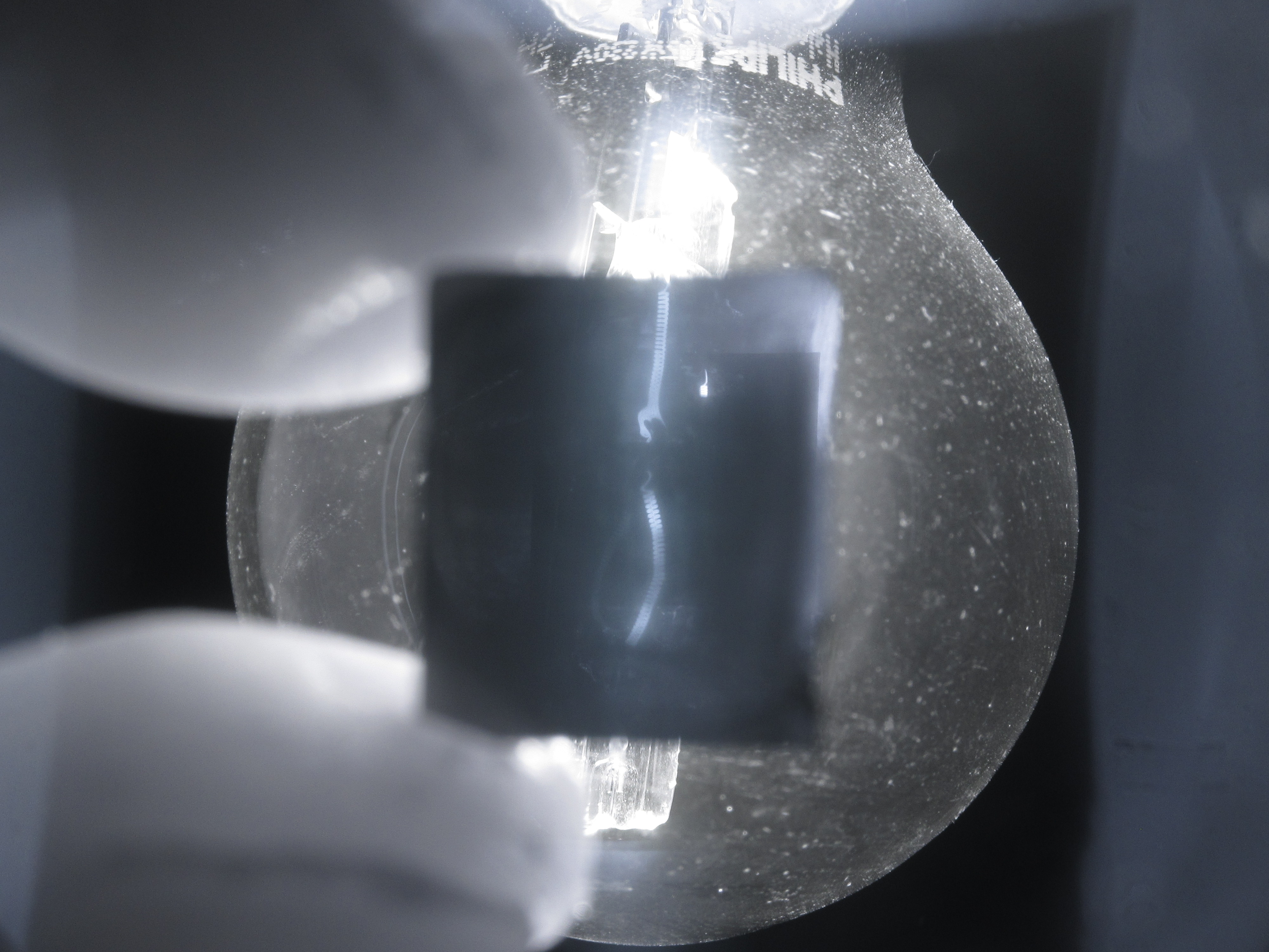 Glühbirne durch einen polierten Siliziumwürfel gesehen