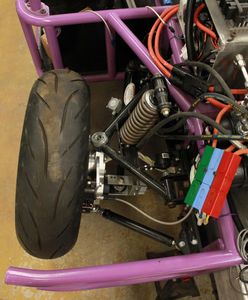 Rad mit E-Antrieb, Bremse, Federung sowie Kontrollsystem.
