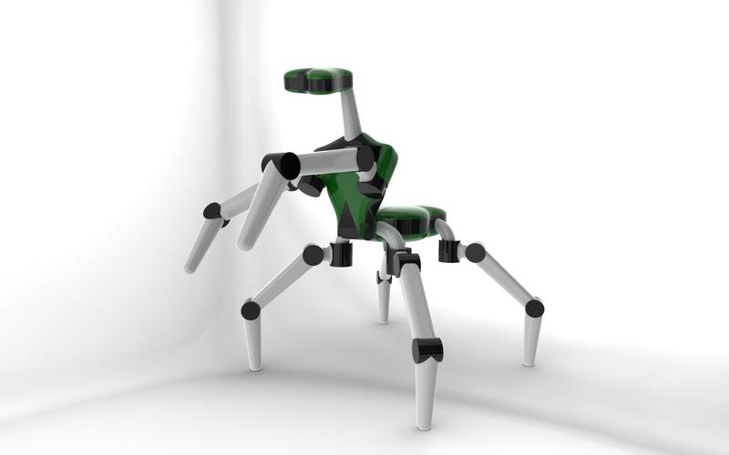 Von der Fangschrecke inspiriert: Roboter „Mantis“ wird mit seinen Vorderbeinen nicht nur laufen, sondern auch manipulieren können. Quelle: Grafik: DFKI GmbH (idw)