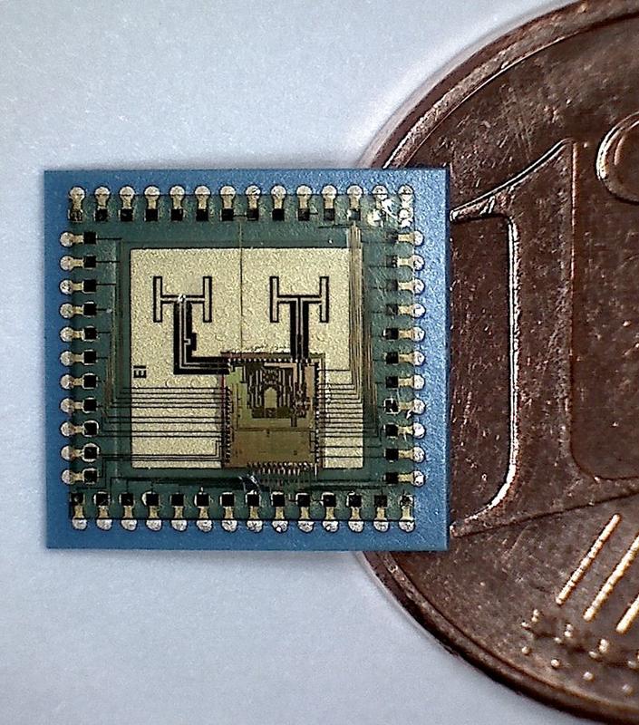 Der neue Radar-Sensor ist nur halb so groß wie eine Eurocent-Münze, aber beinhaltet alle notwendigen Hochfrequenzkomponenten. (Bild: Robert Bosch GmbH / SUCCESS) Quelle: (idw)