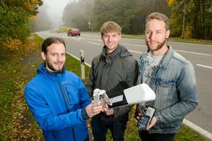 Angehende Ingenieure mit ihrem Projekt "Ghostbuster". Bild: Oliver Dietze