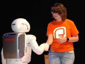 "ASIMO" in Aktion: kann auch Hände schütteln. Bild: asimo.honda.com