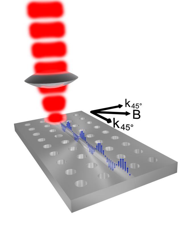 Laseranregung im Wellenleiter: Baustein für Spinwellencomputer. Quelle: Foto: Universität Göttingen (idw)