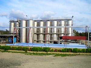 Die blauen Kollektoren (vorne) kühlen die Weintanks (hinten). Bild: ISE Fraunhofer