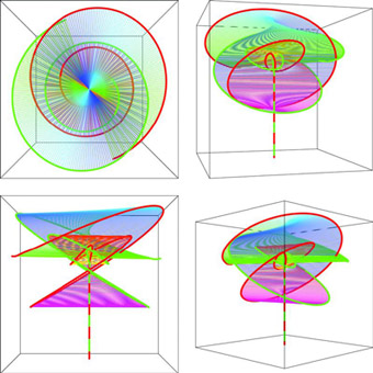 Zwei Schwarze Löcher aus verschiedenen räumlichen Perspektiven. Sie vollführen einen "letzten Tanz" bevor sie verschmelzen und sich in eine gemeinsame Richtung davon bewegen. Abbildung: TPI/FSU