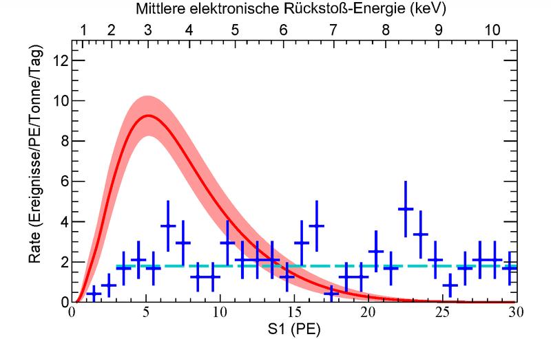 Vergleich der XENON100-Daten (blau) mit DAMA/LIBRA: Die rote Kurve zeigt, wie das DAMA/LIBRA-Energie Quelle: Grafik: XENON-Kollaboration (idw)