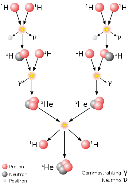 Proton-Proton-Reaktion und Fortsetzung bis zur Bildung von He-4