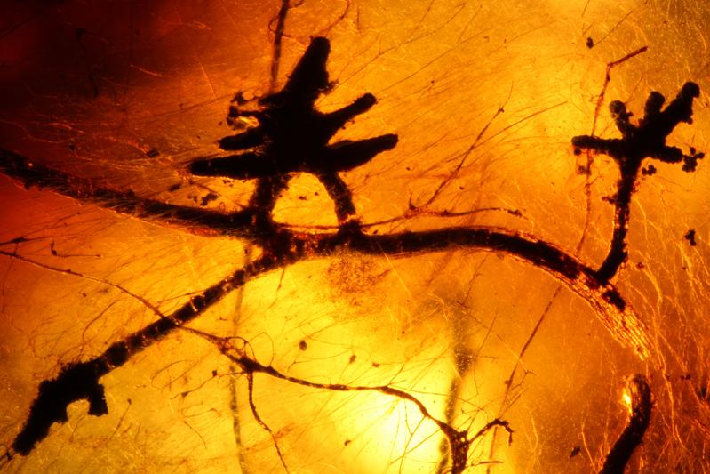 Ektomykorrhizzen in indischem Bernstein. Quelle: Foto: Uni Göttingen (idw)
