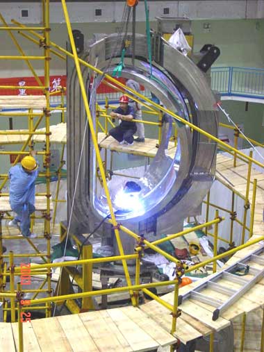 EAST während des Aufbaus. Zu sehen ist ein Teil des ringförmigen Plasmagefäßes. Foto: ASIPP