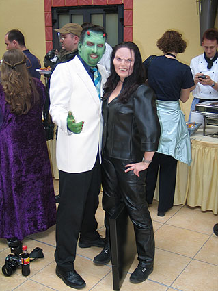 Andy Hallett (ganz in grün), den wir gleich in der Eingangshalle trafen