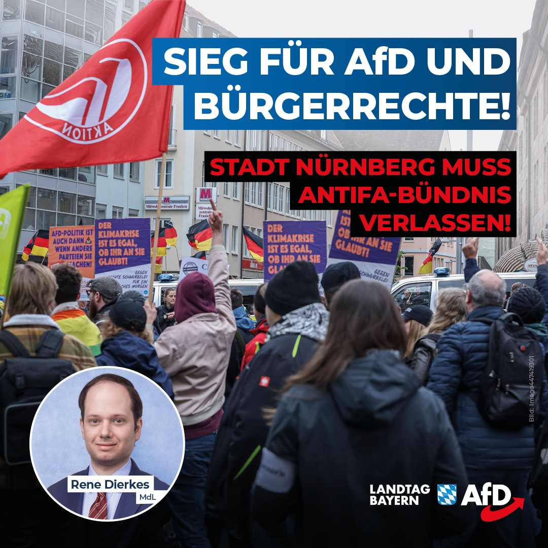 Zurück zu Rene Dierkes: Sieg für AfD und Bürgerrechte – Stadt Nürnberg muss Antifa-Bündnis verlassen!