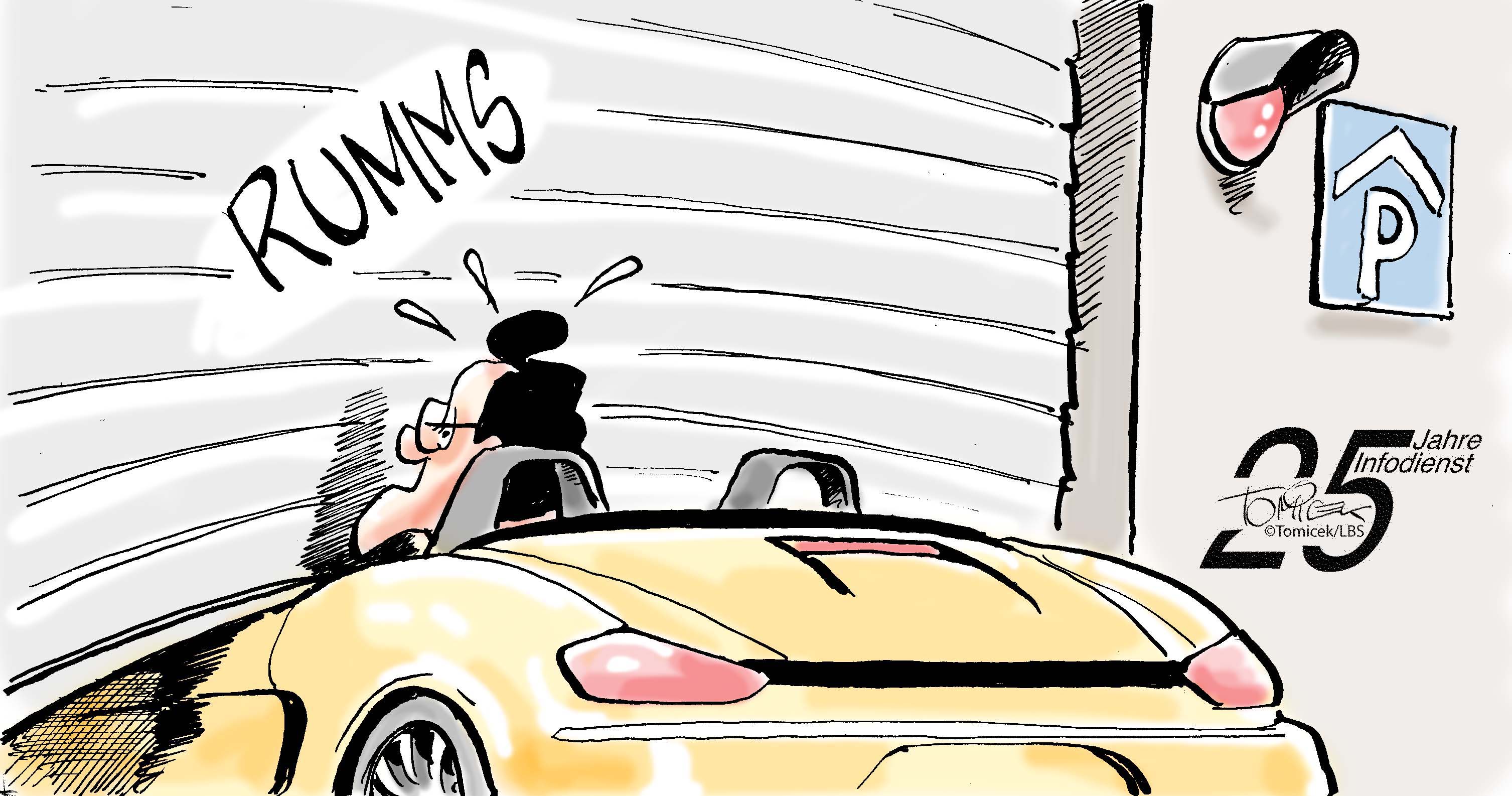 Zurück zu Grün oder nicht Grün? Garagentor krachte auf ausfahrendes Luxusautomobil