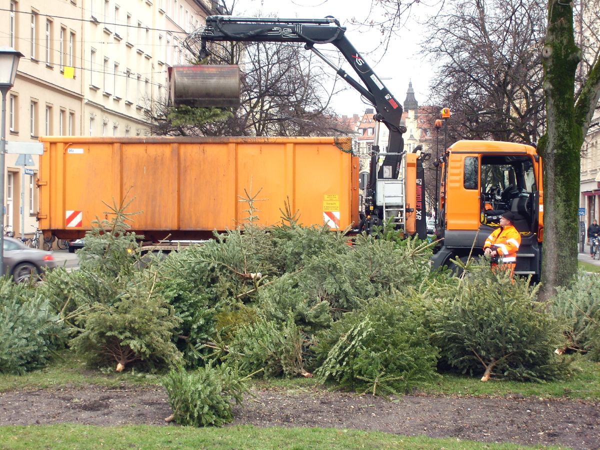 Traditionsgemäß werden in München-Haidhausen in der ersten Januarwoche Christbäume für den Tierpark Hellabrunn als Tiernahrung gesammelt und abgeholt.