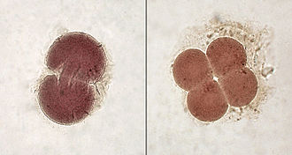 Embryonen im 2- und 4-Zellen-Stadium. Bild: Minami Himemiya / de.wikipedia.org