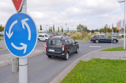 Prinzipiell gilt: Wer im Kreisverkehr fährt, hat Vorfahrt. Trotzdem muss auch der Vorfahrtsberechtigte aufpassen. Bild: HUK-COBURG