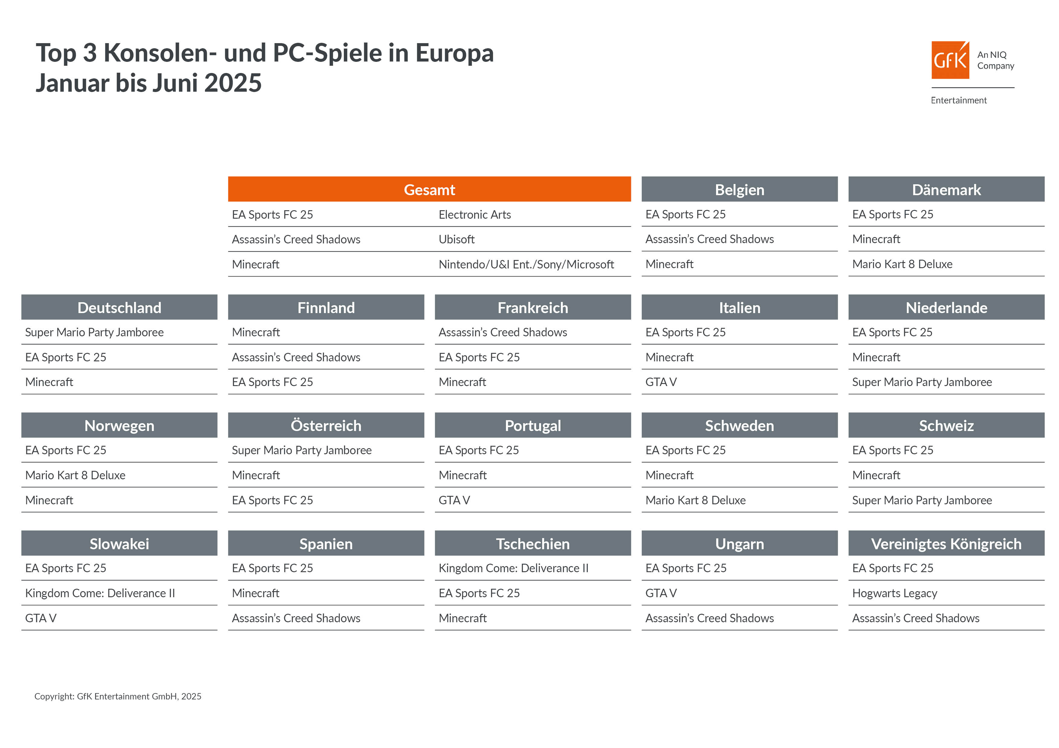 Top 3 Games in Europa im ersten Halbjahr 2025 Bild: GfK Entertainment GmbH Fotograf: GfK Entertainment GmbH