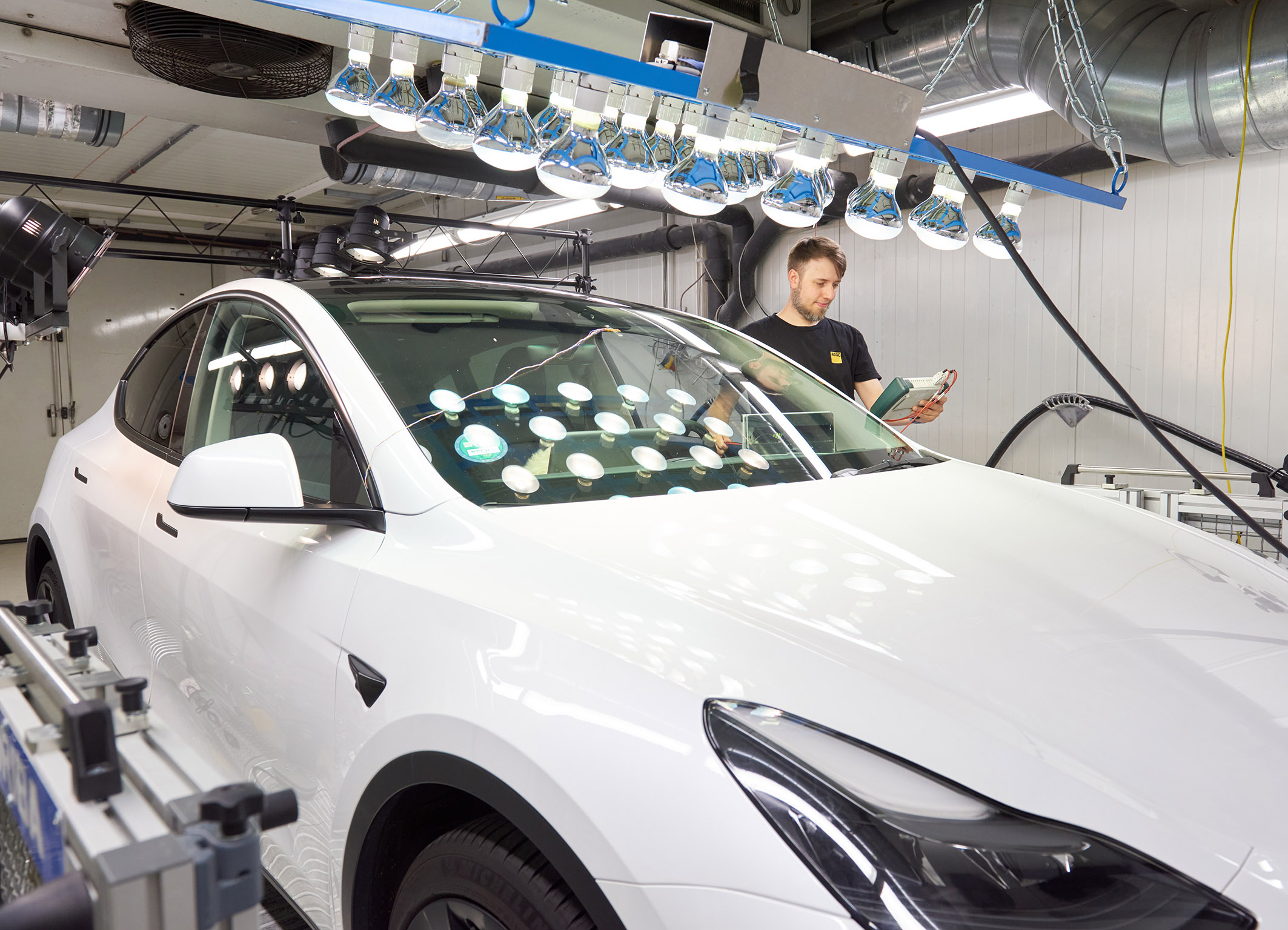 Das Testlabor Elektromobilität wurde auf 35 Grad Celsius aufgeheizt, die UV-Lampen simulieren die Sonneneinstrahlung