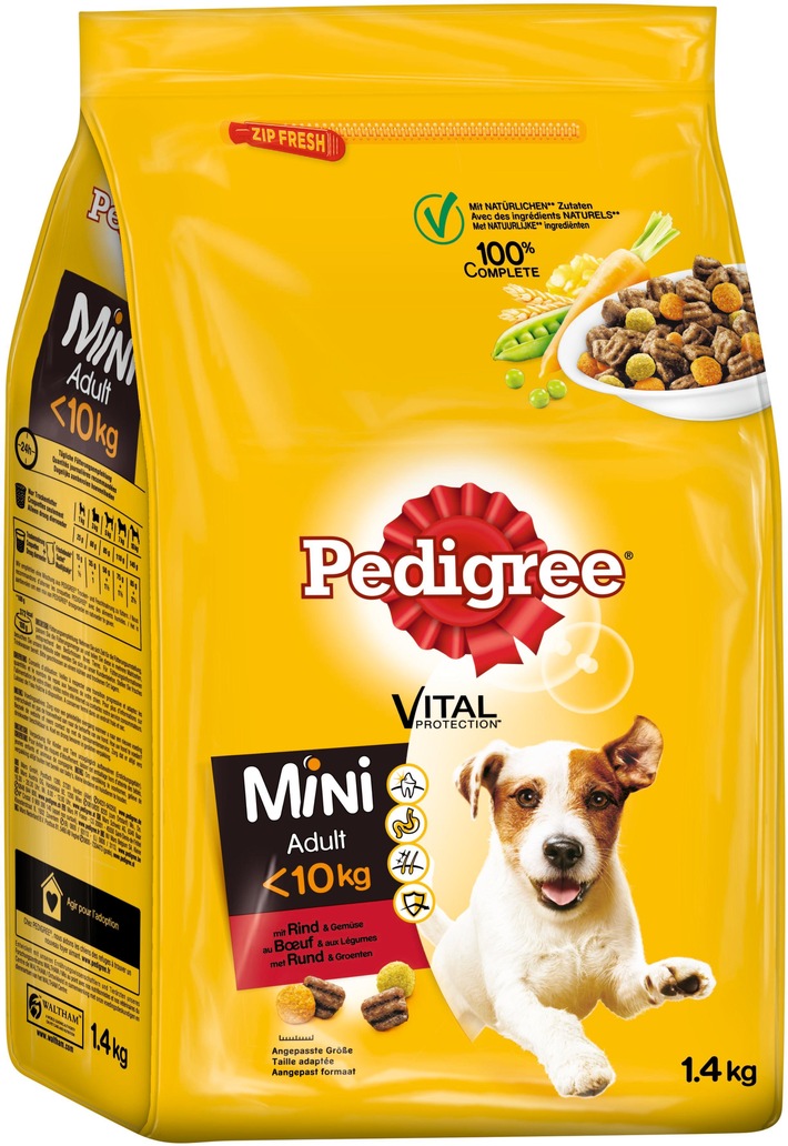 Zurück zu Vorsorglicher Rückruf einer begrenzten Anzahl von Pedigree Vital Trockenfutter für kleine Hunde (<10kg) Adult mit Rind, 1,4 kg