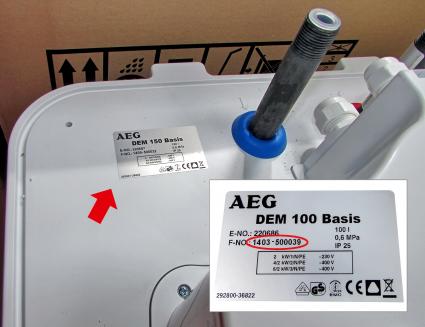 Das Typenschild befindet sich an der unteren Geräteseite direkt neben dem Kaltwassereinlauf. Bild: "obs/AEG Haustechnik/Bild: EHT Haustechnik GmbH"
